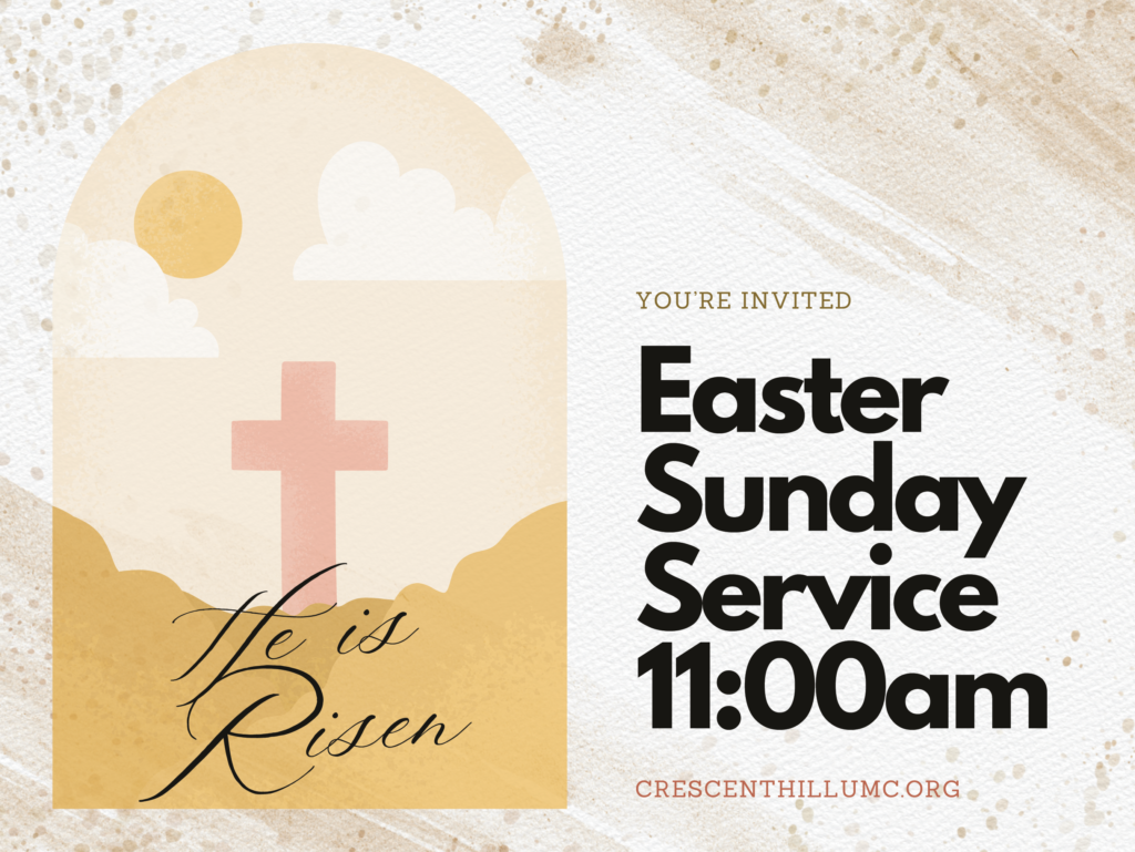 Come and celebrate Easter with us at Crescent Hill United Methodist Church on March 31st at 11:00am! Join our special service filled with joy, hope, and community spirit at 201 South Peterson Avenue, Louisville, KY 40206. He is Risen!